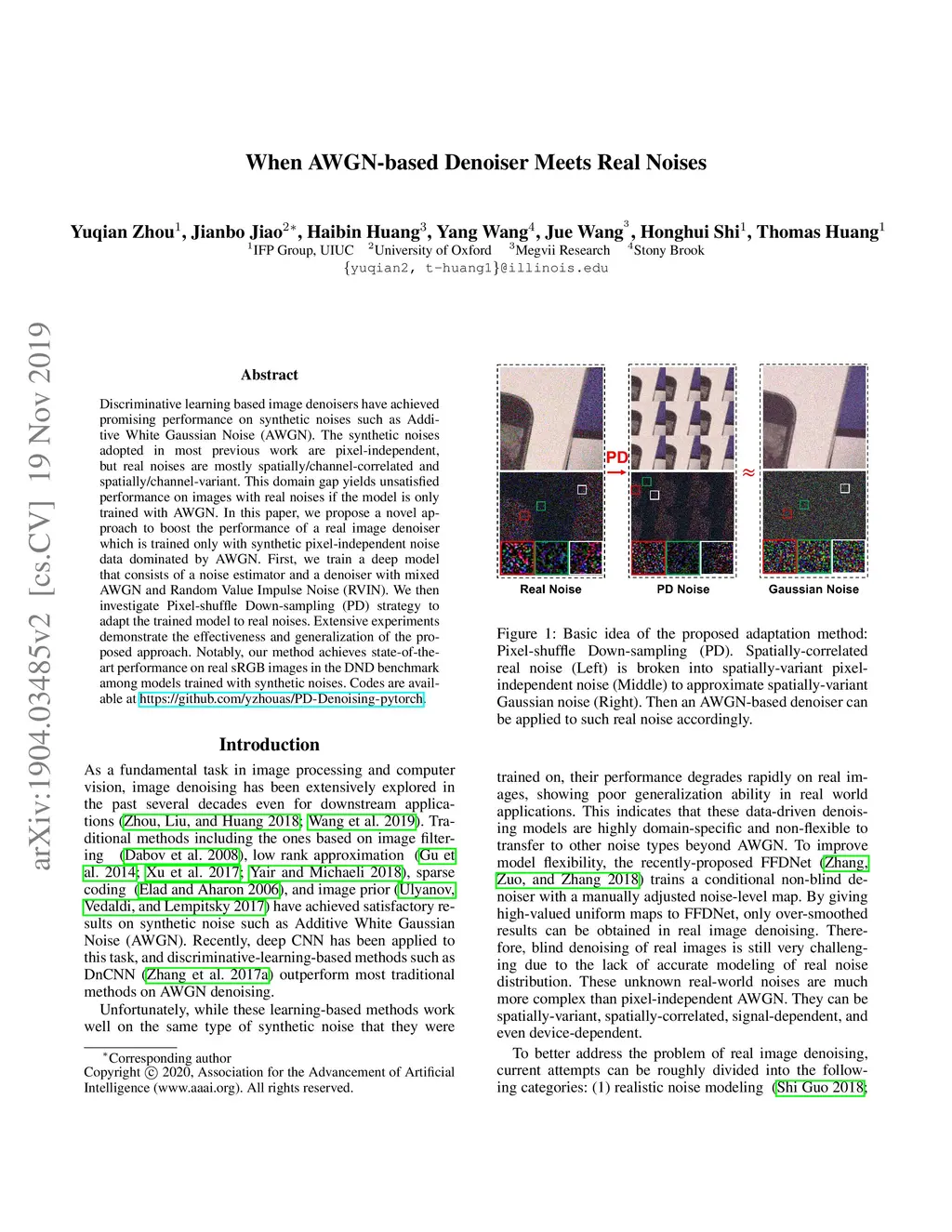 Discriminative learning-based image denoisers have achieved promising performance on synthetic noises such as Additive White Gaussian Noise (AWGN). The synthetic noises adopted in most previous work are pixel-independent, but real noises are mostly spatially/channel-correlated and spatially/channel-variant. This domain gap yields unsatisfied performance on images with real noises if the model is only trained with AWGN. In this paper, we propose a novel approach to boost the performance of a real image denoiser which is trained only with synthetic pixel-independent noise data dominated by AWGN. First, we train a deep model that consists of a noise estimator and a denoiser with mixed AWGN and Random Value Impulse Noise (RVIN). We then investigate Pixel-shuffle Down-sampling (PD) strategy to adapt the trained model to real noises. Extensive experiments demonstrate the effectiveness and generalization of the proposed approach. Notably, our method achieves state-of-the-art performance on real sRGB images in the DND benchmark among models trained with synthetic noises. Codes are available at https://github.com/yzhouas/PD-Denoising-pytorch.