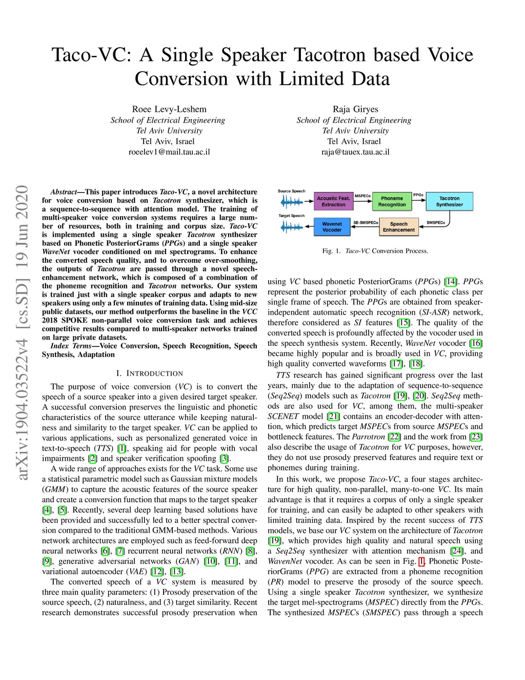 Taco-VC: A Single Speaker Tacotron based Voice Conversion with Limited