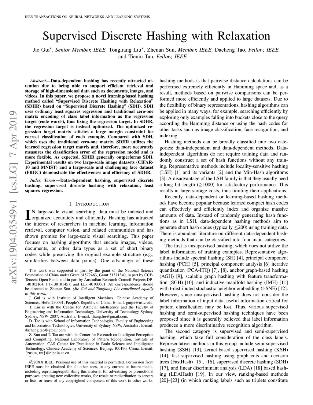 Data-dependent hashing has recently attracted attention due to being able to support efficient retrieval and storage of high-dimensional data such as documents, images, and videos. In this paper, we propose a novel learning-based hashing method called "Supervised Discrete Hashing with Relaxation" (SDHR) based on "Supervised Discrete Hashing" (SDH). SDH uses ordinary least squares regression and traditional zero-one matrix encoding of class label information as the regression target (code words), thus fixing the regression target. In SDHR, the regression target is instead optimized. The optimized regression target matrix satisfies a large margin constraint for correct classification of each example. Compared with SDH, which uses the traditional zero-one matrix, SDHR utilizes the learned regression target matrix and, therefore, more accurately measures the classification error of the regression model and is more flexible. As expected, SDHR generally outperforms SDH. Experimental results on two large-scale image datasets (CIFAR-10 and MNIST) and a large-scale and challenging face dataset (FRGC) demonstrate the effectiveness and efficiency of SDHR.