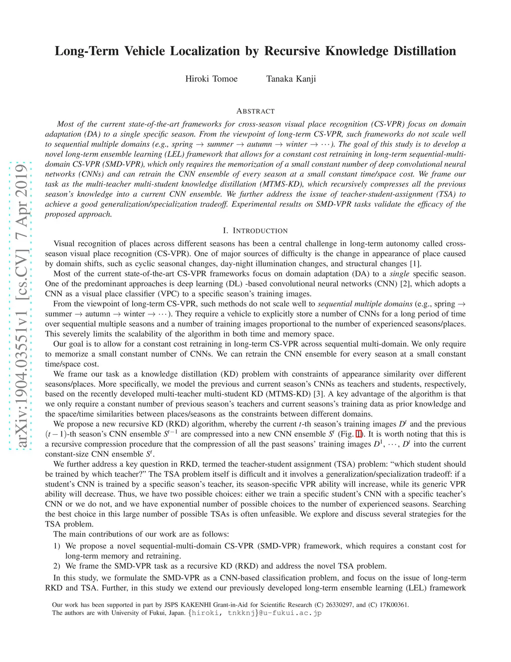 Long-Term Vehicle Localization by Recursive Knowledge Distillation