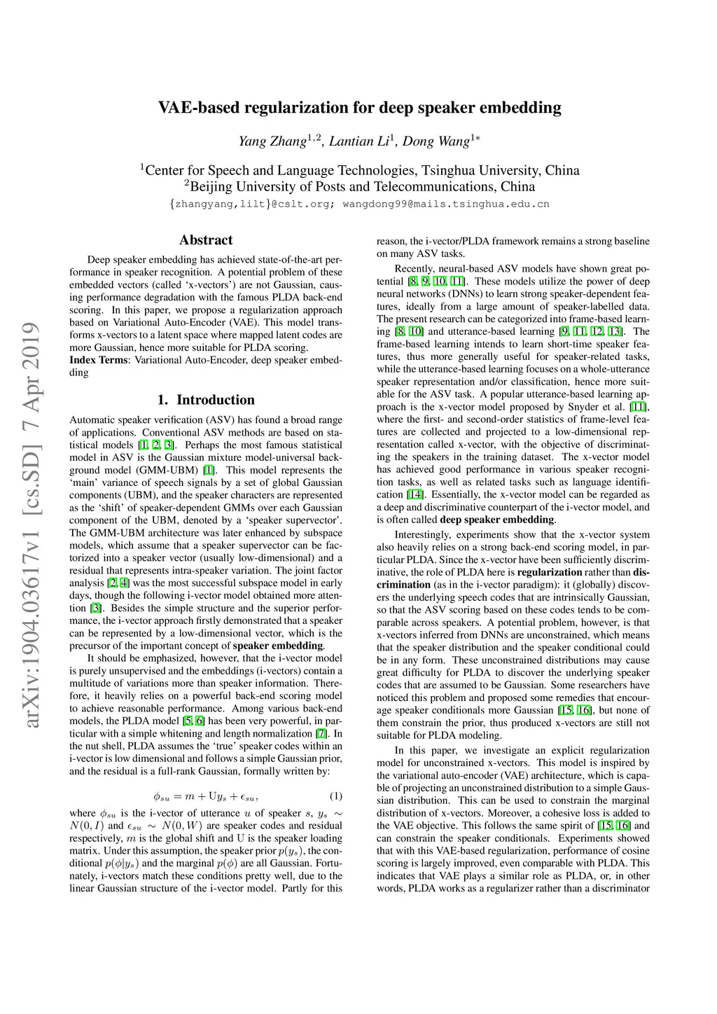 VAE-based regularization for deep speaker embedding