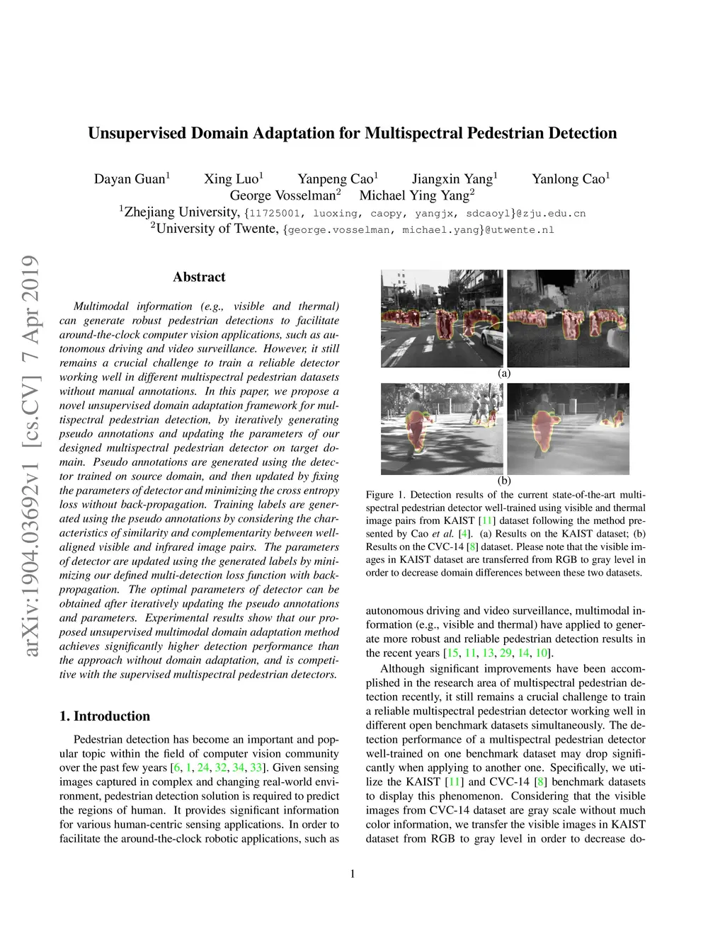 Unsupervised Domain Adaptation for Multispectral Pedestrian Detection