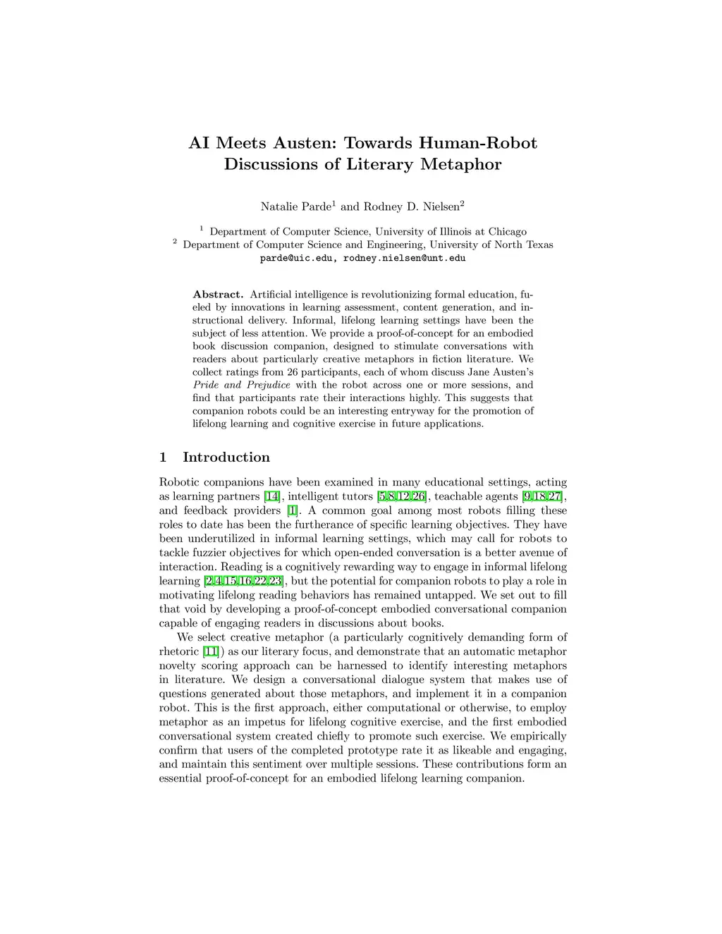 AI Meets Austen: Towards Human-Robot Discussions of Literary Metaphor
