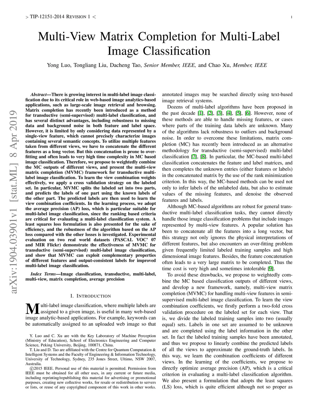 Multi-View Matrix Completion for Multi-Label Image Classification