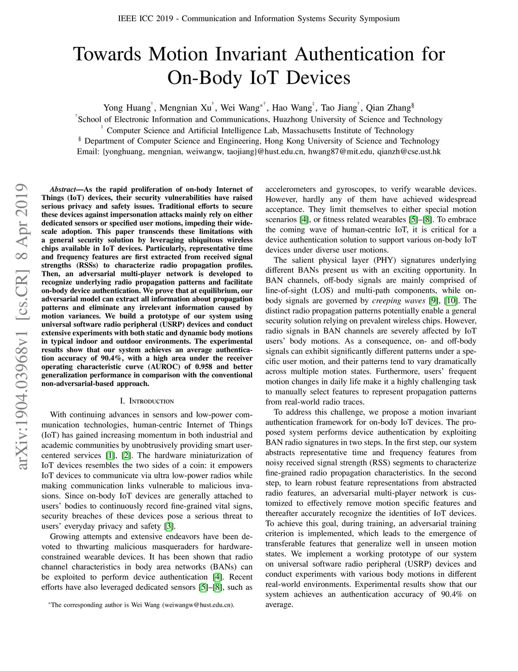 Towards Motion Invariant Authentication for On-Body IoT Devices