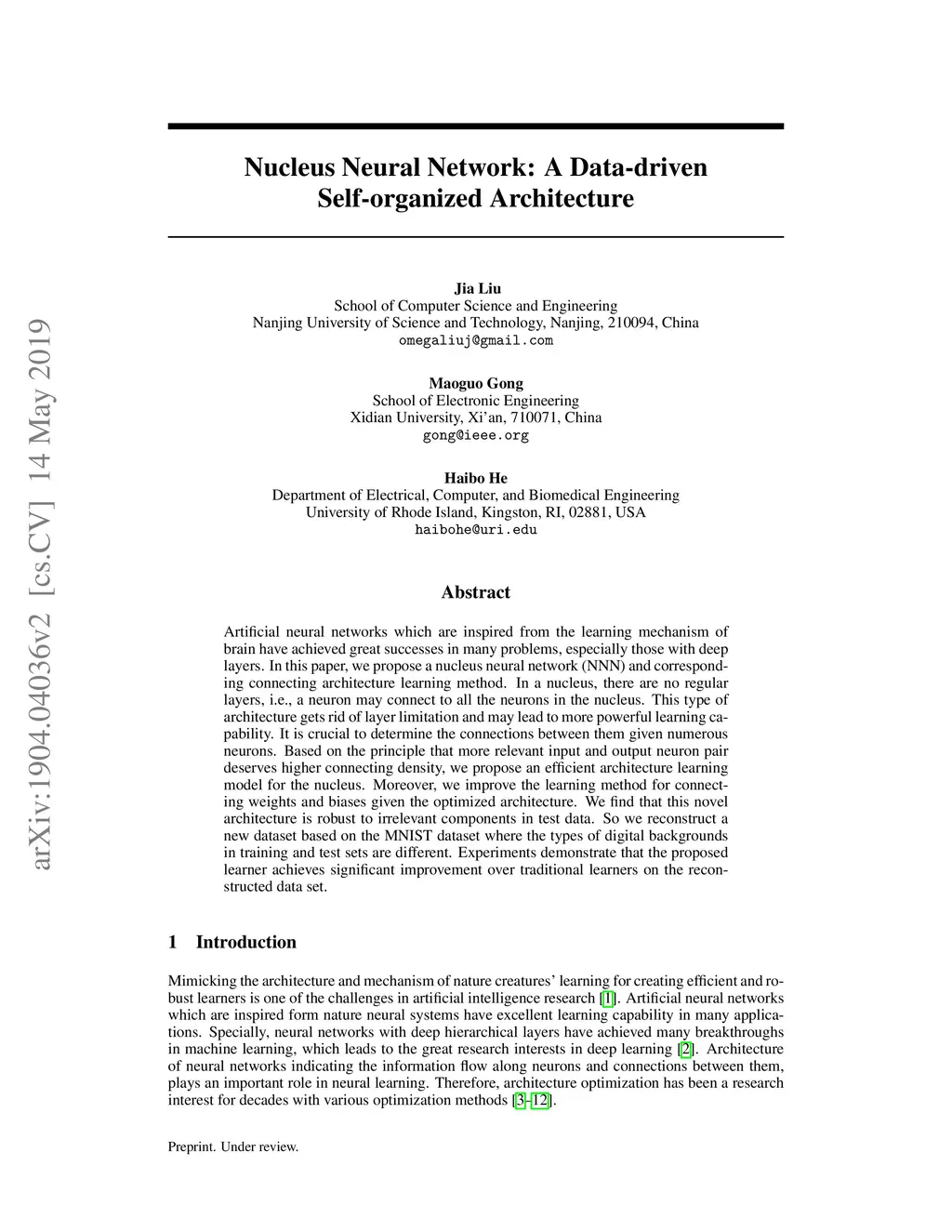 Nucleus Neural Network: A Data-driven Self-organized Architecture