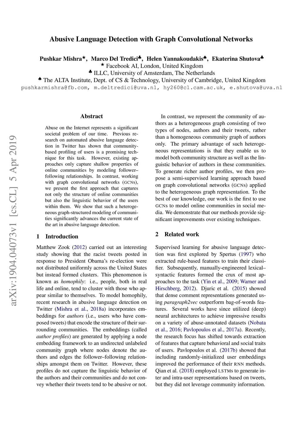 Abusive Language Detection with Graph Convolutional Networks