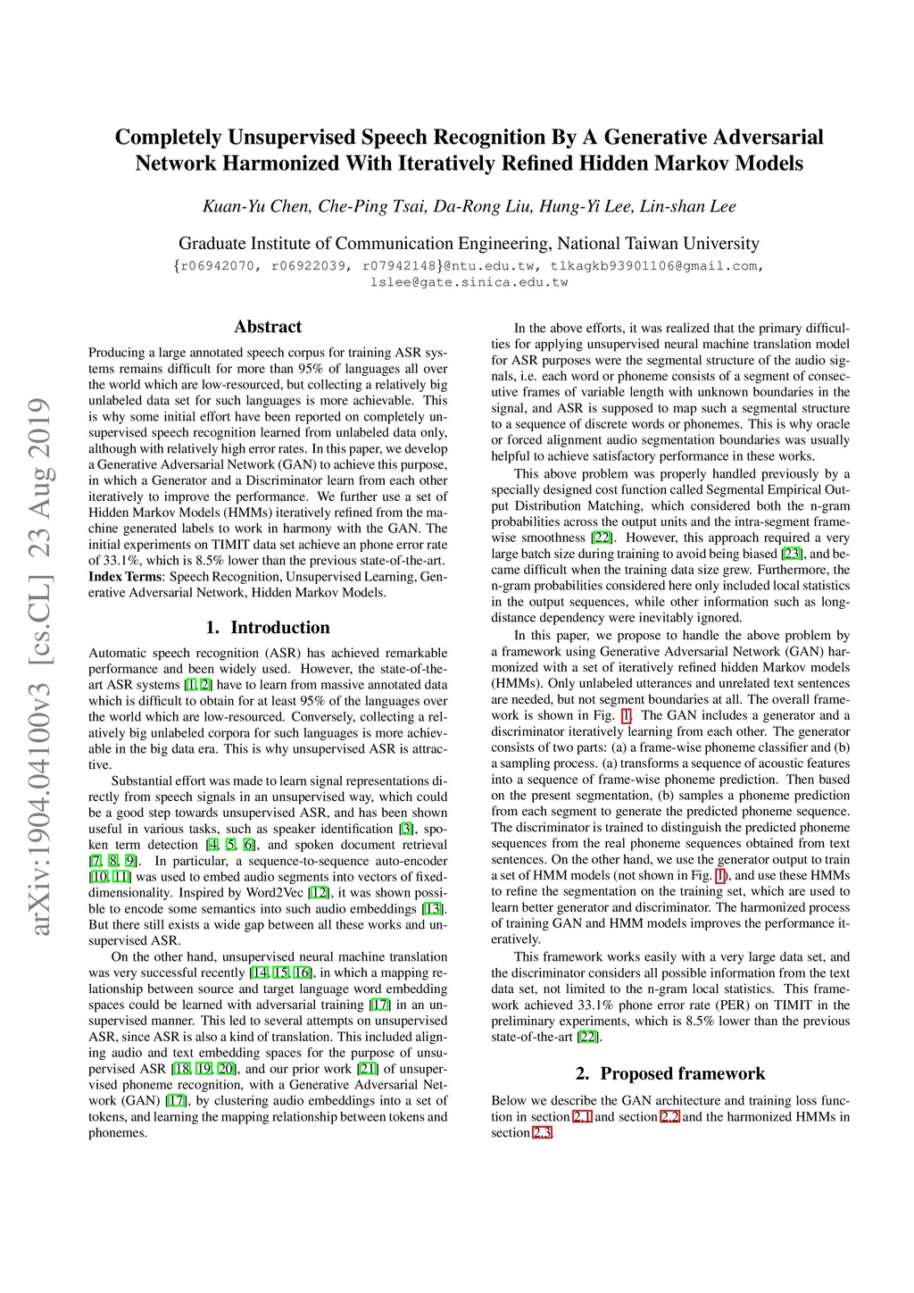 Completely Unsupervised Speech Recognition By A Generative Adversarial