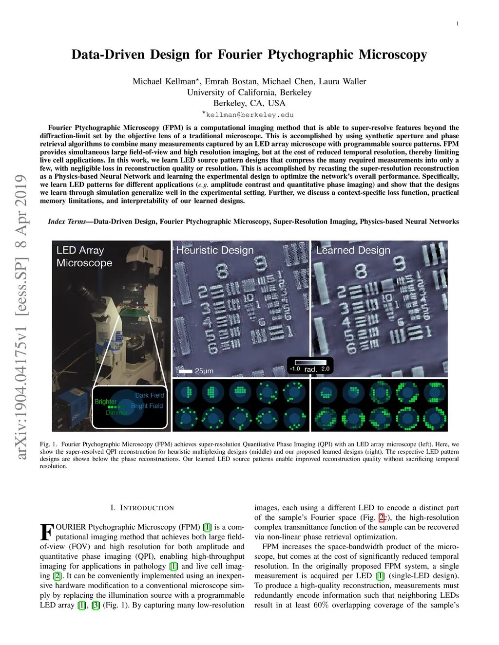 Fourier Ptychographic Microscopy (FPM) is a computational imaging method that is able to super-resolve features beyond the diffraction-limit set by the objective lens of a traditional microscope. This is accomplished by using synthetic aperture and phase retrieval algorithms to combine many measurements captured by an LED array microscope with programmable source patterns. FPM provides simultaneous large field-of-view and high resolution imaging, but at the cost of reduced temporal resolution, thereby limiting live cell applications. In this work, we learn LED source pattern designs that compress the many required measurements into only a few, with negligible loss in reconstruction quality or resolution. This is accomplished by recasting the super-resolution reconstruction as a Physics-based Neural Network and learning the experimental design to optimize the network's overall performance. Specifically, we learn LED patterns for different applications (e.g. amplitude contrast and quantitative phase imaging) and show that the designs we learn through simulation generalize well in the experimental setting. Further, we discuss a context-specific loss function, practical memory limitations, and interpretability of our learned designs.