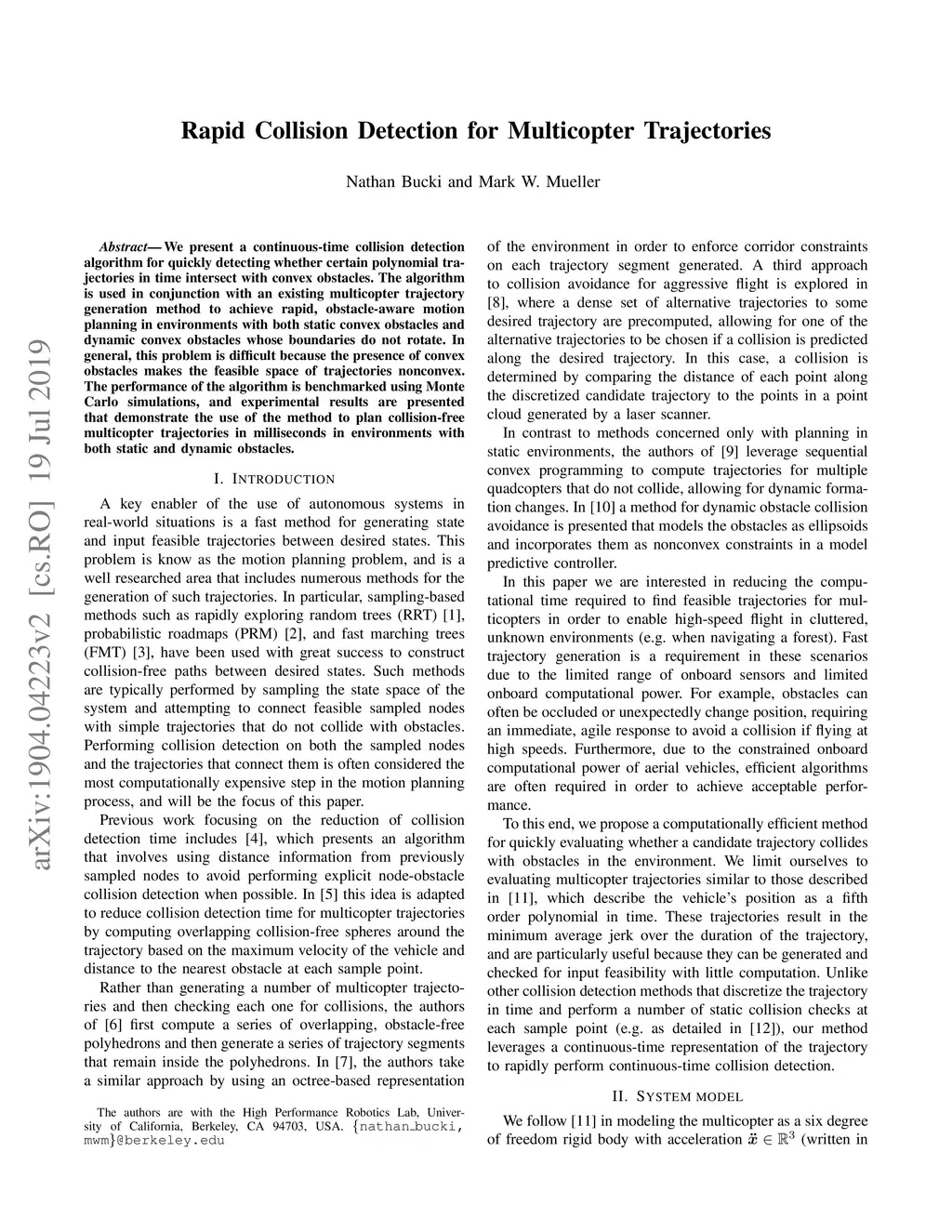 Rapid Collision Detection for Multicopter Trajectories