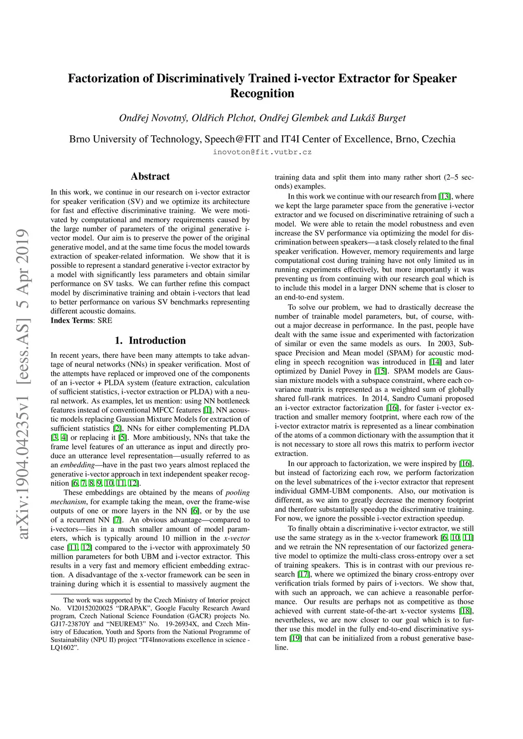 Factorization of Discriminatively Trained i-vector Extractor for Speaker
