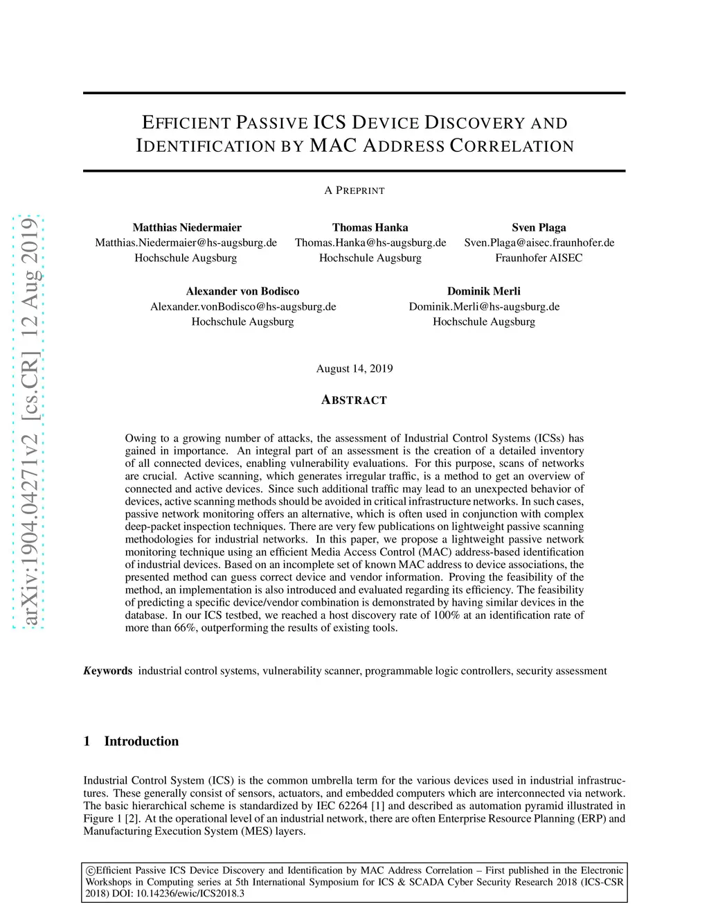 Efficient Passive ICS Device Discovery and Identification by MAC Address