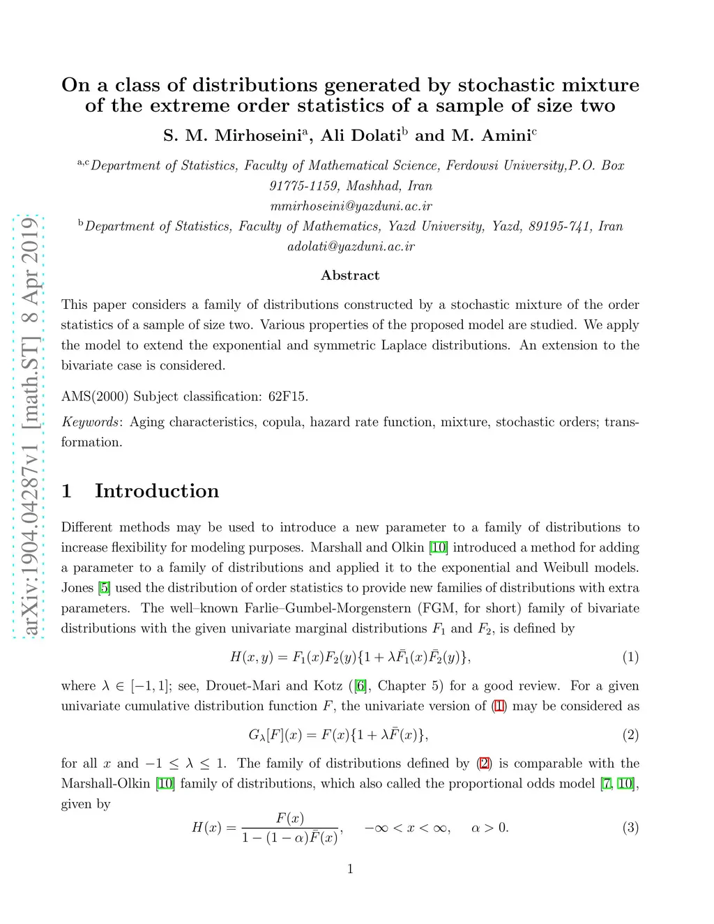 This paper considers a family of distributions constructed by a stochastic mixture of the order statistics of a sample of size two. Various properties of the proposed model are studied. We apply the model to extend the exponential and symmetric Laplace distributions. An extension to the bivariate case is considered.