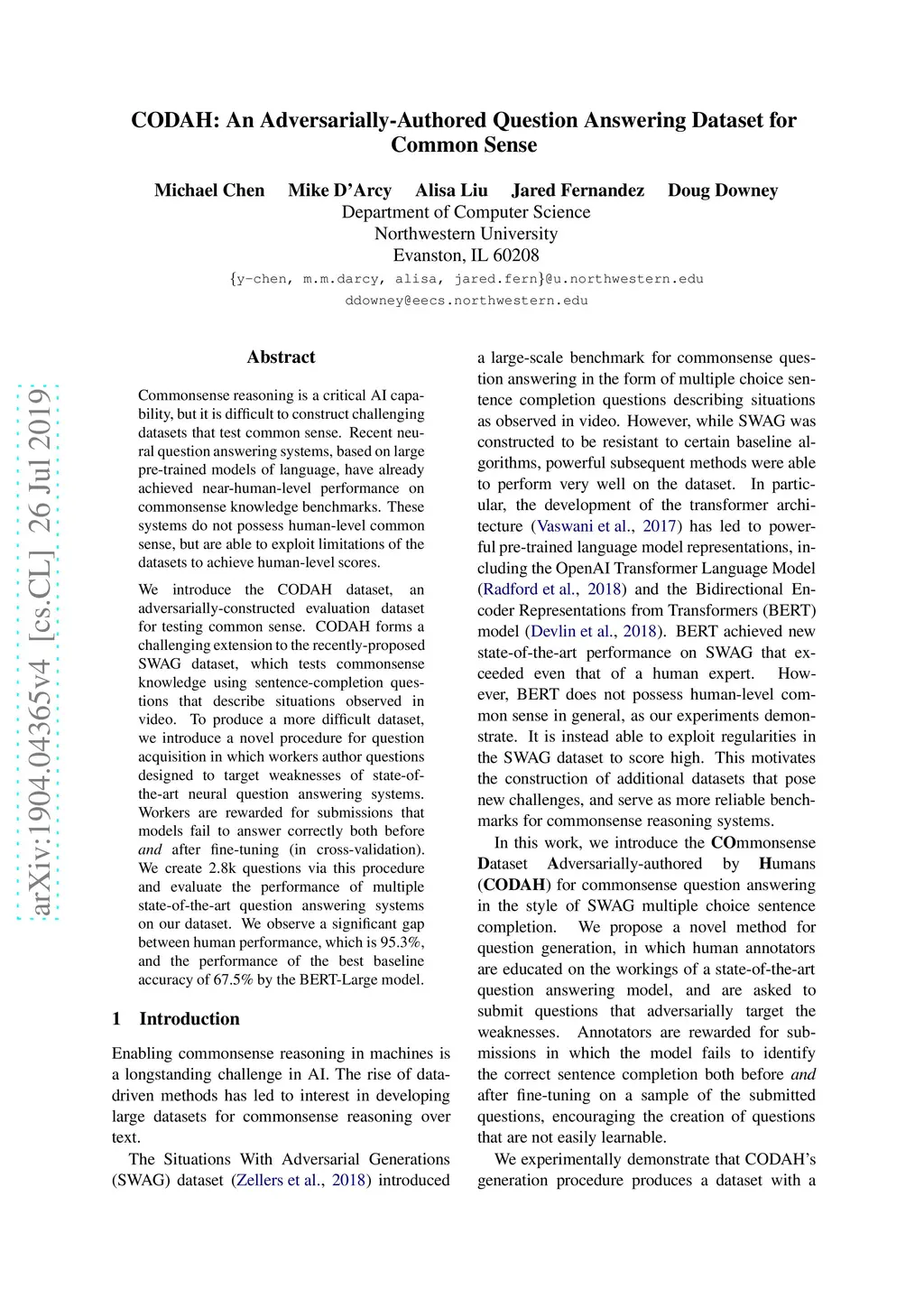 AQuA: An Adversarially Authored Question-Answer Dataset for Common Sense