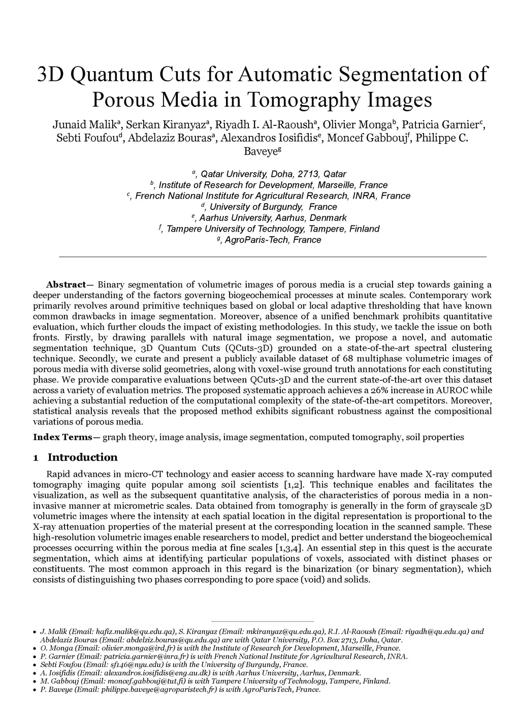 3D Quantum Cuts for Automatic Segmentation of Porous Media in Tomography
