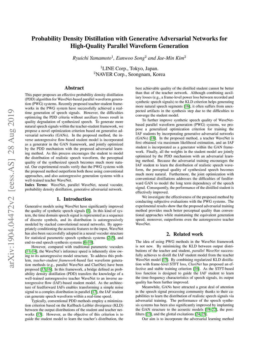 This paper proposes an effective probability density distillation (PDD) algorithm for WaveNet-based parallel waveform generation (PWG) systems. Recently proposed teacher-student frameworks in the PWG system have successfully achieved a real-time generation of speech signals. However, the difficulties optimizing the PDD criteria without auxiliary losses result in quality degradation of synthesized speech. To generate more natural speech signals within the teacher-student framework, we propose a novel optimization criterion based on generative adversarial networks (GANs). In the proposed method, the inverse autoregressive flow-based student model is incorporated as a generator in the GAN framework, and jointly optimized by the PDD mechanism with the proposed adversarial learning method. As this process encourages the student to model the distribution of realistic speech waveform, the perceptual quality of the synthesized speech becomes much more natural. Our experimental results verify that the PWG systems with the proposed method outperform both those using conventional approaches, and also autoregressive generation systems with a well-trained teacher WaveNet.
