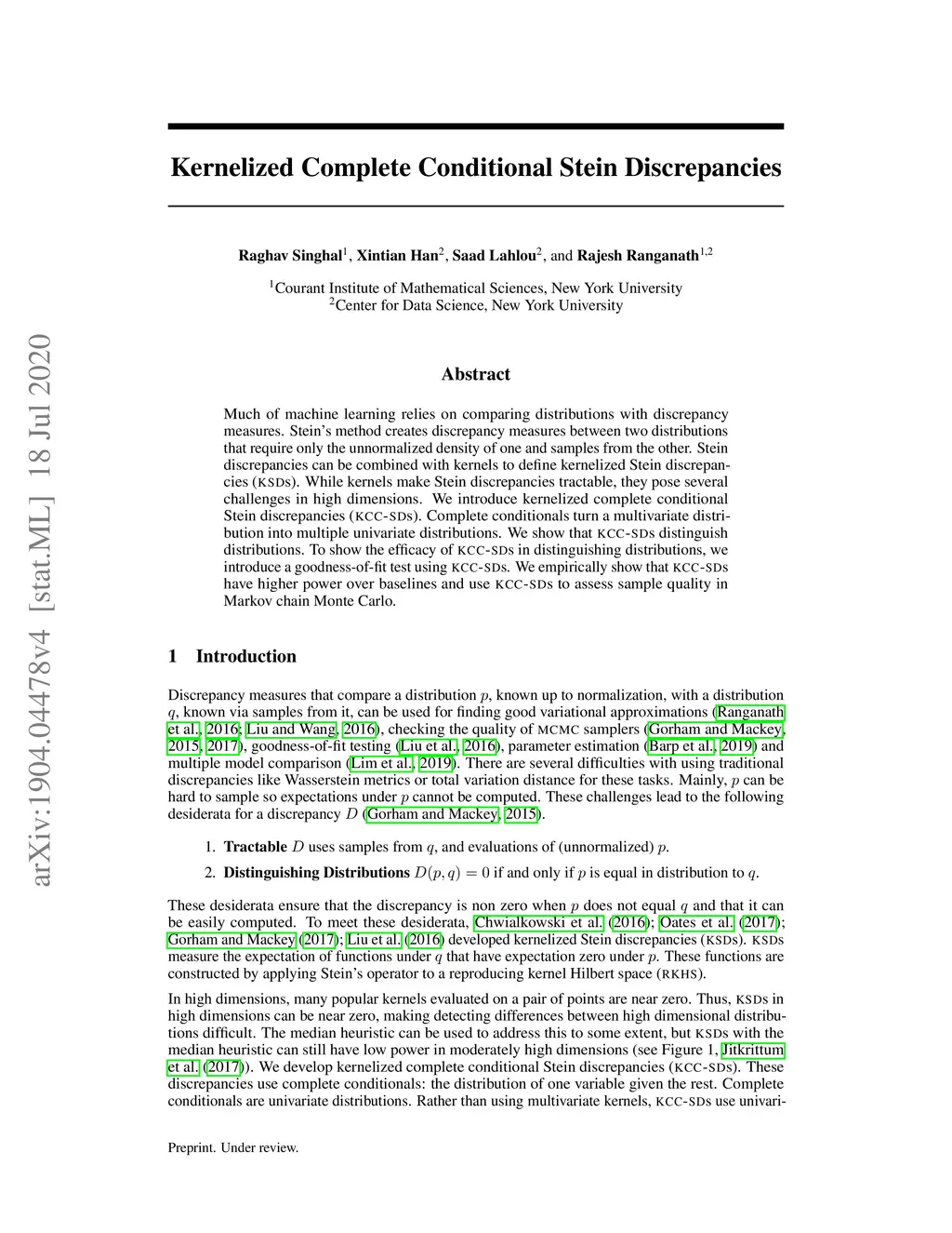 Much of machine learning relies on comparing distributions with discrepancy measures. Stein's method creates discrepancy measures between two distributions that require only the unnormalized density of one and samples from the other. Stein discrepancies can be combined with kernels to define kernelized Stein discrepancies (KSDs). While kernels make Stein discrepancies tractable, they pose several challenges in high dimensions. We introduce kernelized complete conditional Stein discrepancies (KCC-SDs). Complete conditionals turn a multivariate distribution into multiple univariate distributions. We show that KCC-SDs distinguish distributions. To show the efficacy of KCC-SDs in distinguishing distributions, we introduce a goodness-of-fit test using KCC-SDs. We empirically show that KCC-SDs have higher power over baselines and use KCC-SDs to assess sample quality in Markov chain Monte Carlo.
