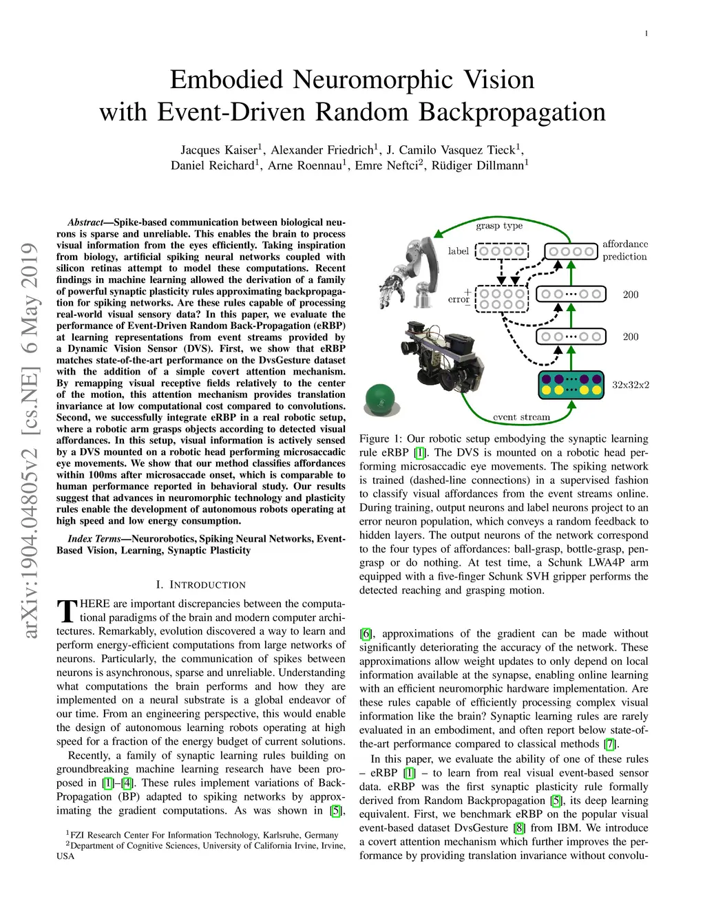 Embodied Neuromorphic Vision with Event-Driven Random Backpropagation
