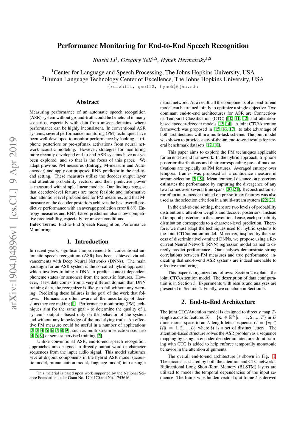 Performance Monitoring for End-to-End Speech Recognition