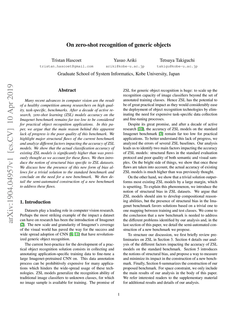 On zero-shot recognition of generic objects