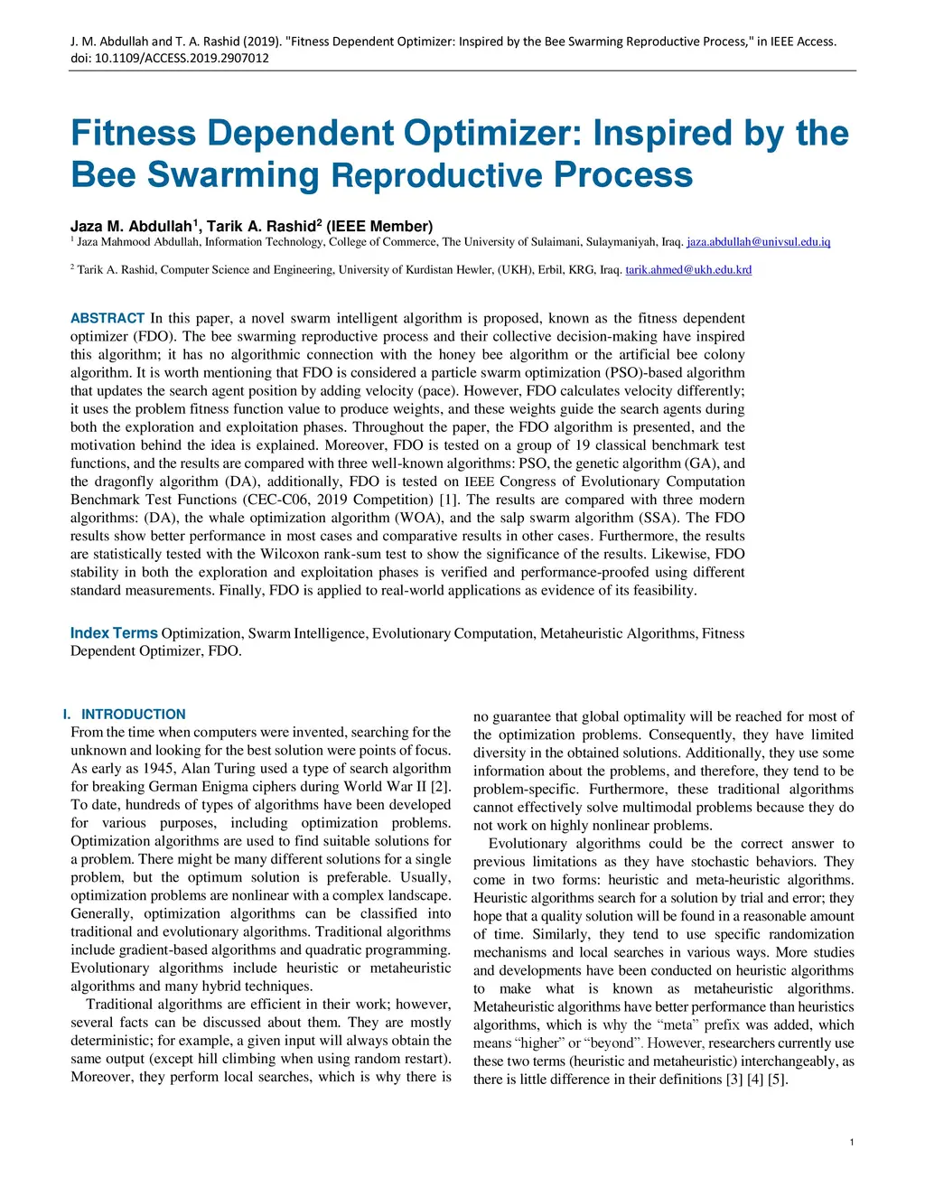 Fitness Dependent Optimizer: Inspired by the Bee Swarming Reproductive