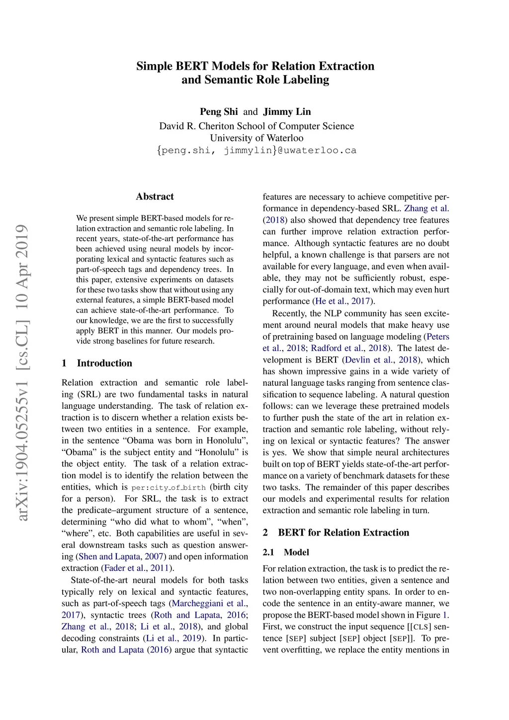 Simple BERT Models for Relation Extraction and Semantic Role Labeling