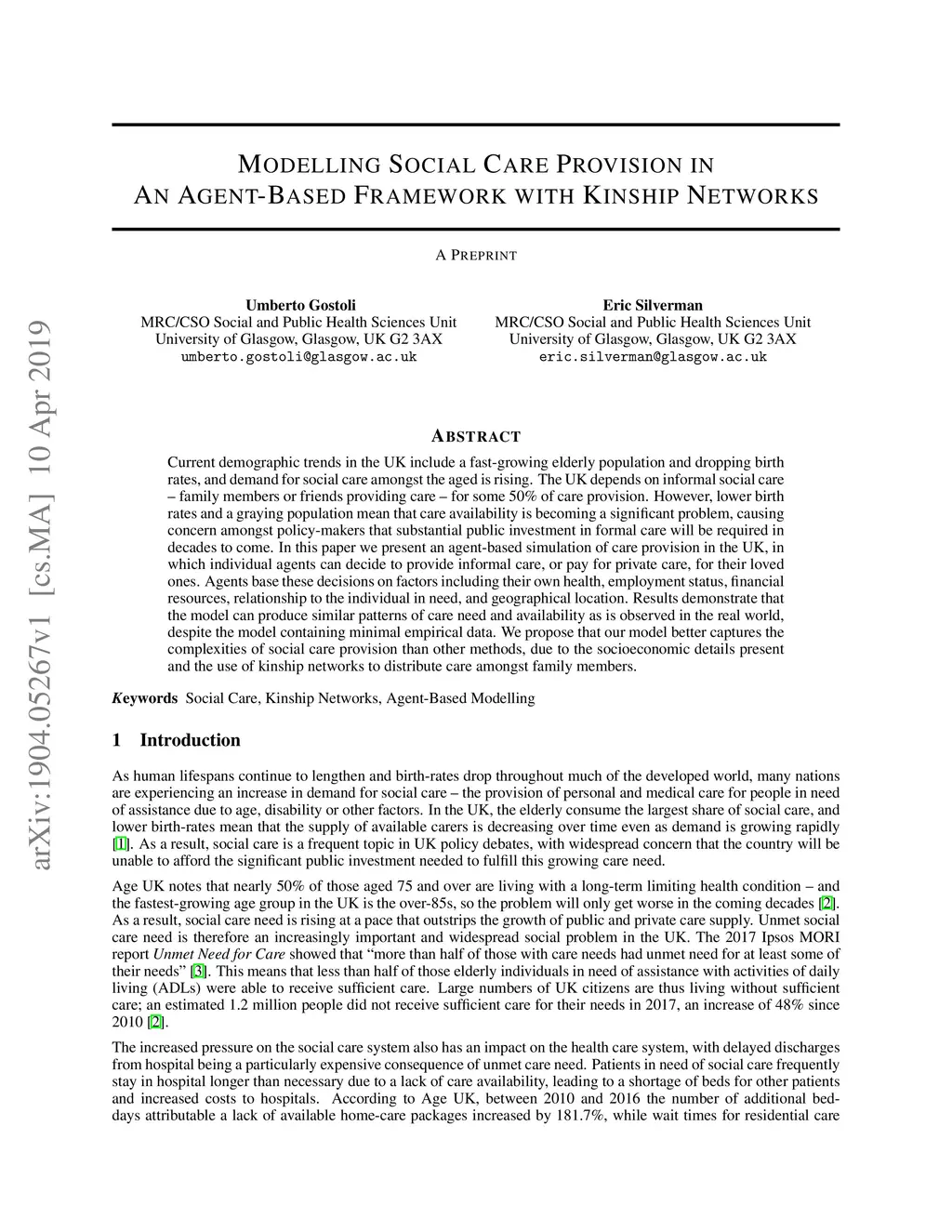 Modelling Social Care Provision in An Agent-Based Framework with Kinship
