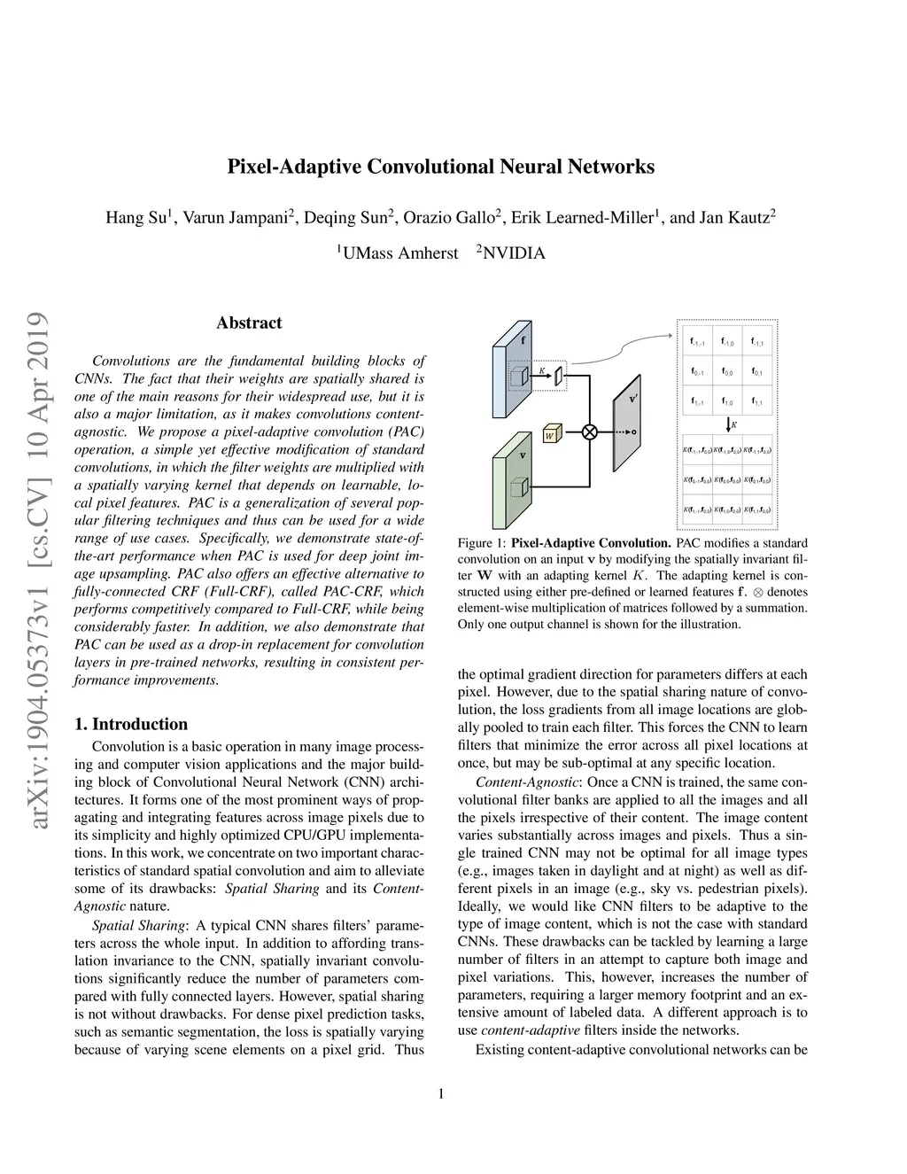 Pixel-Adaptive Convolutional Neural Networks