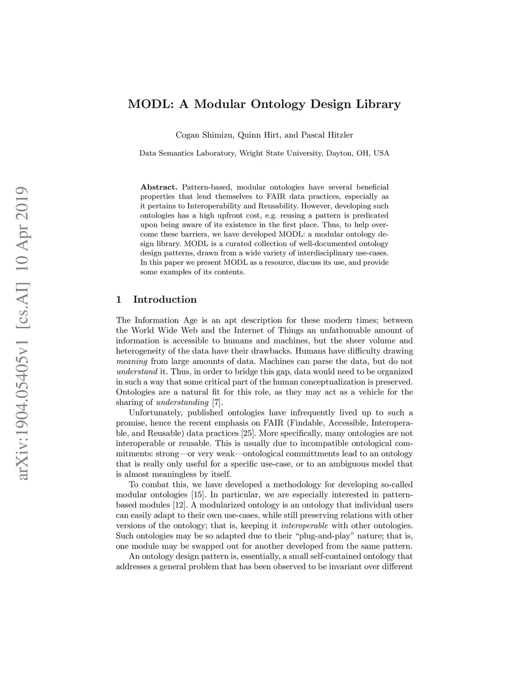 MODL: A Modular Ontology Design Library