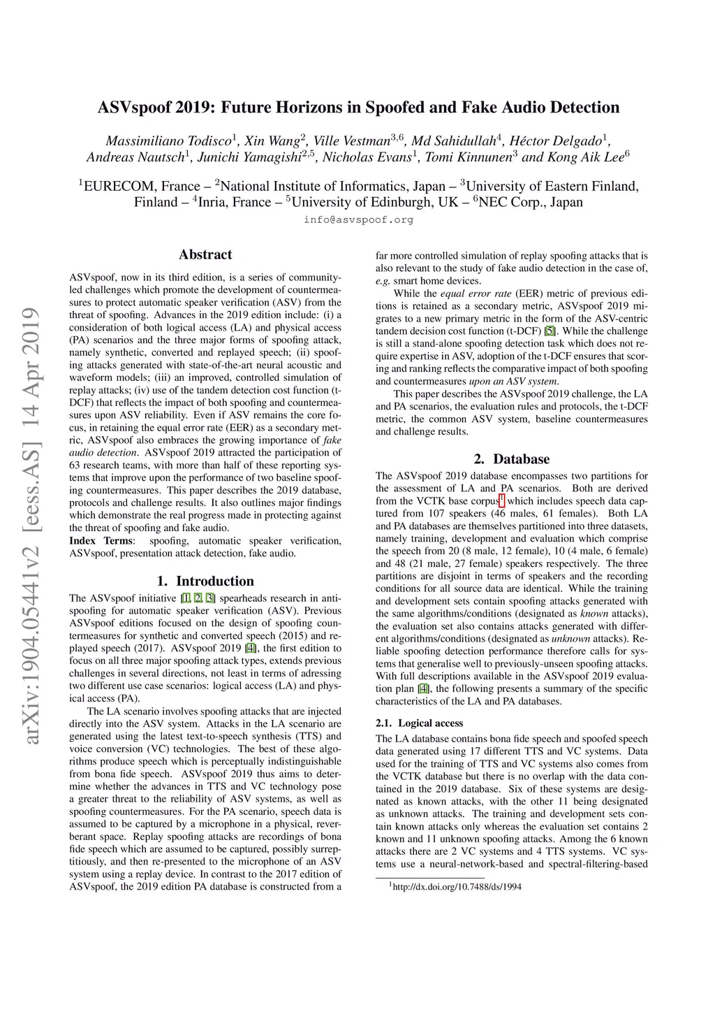 ASVspoof 2019: Future Horizons in Spoofed and Fake Audio Detection