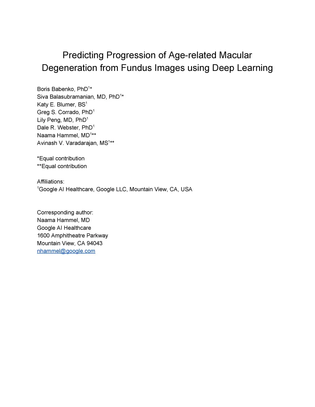 Predicting Progression of Age-related Macular Degeneration from Fundus