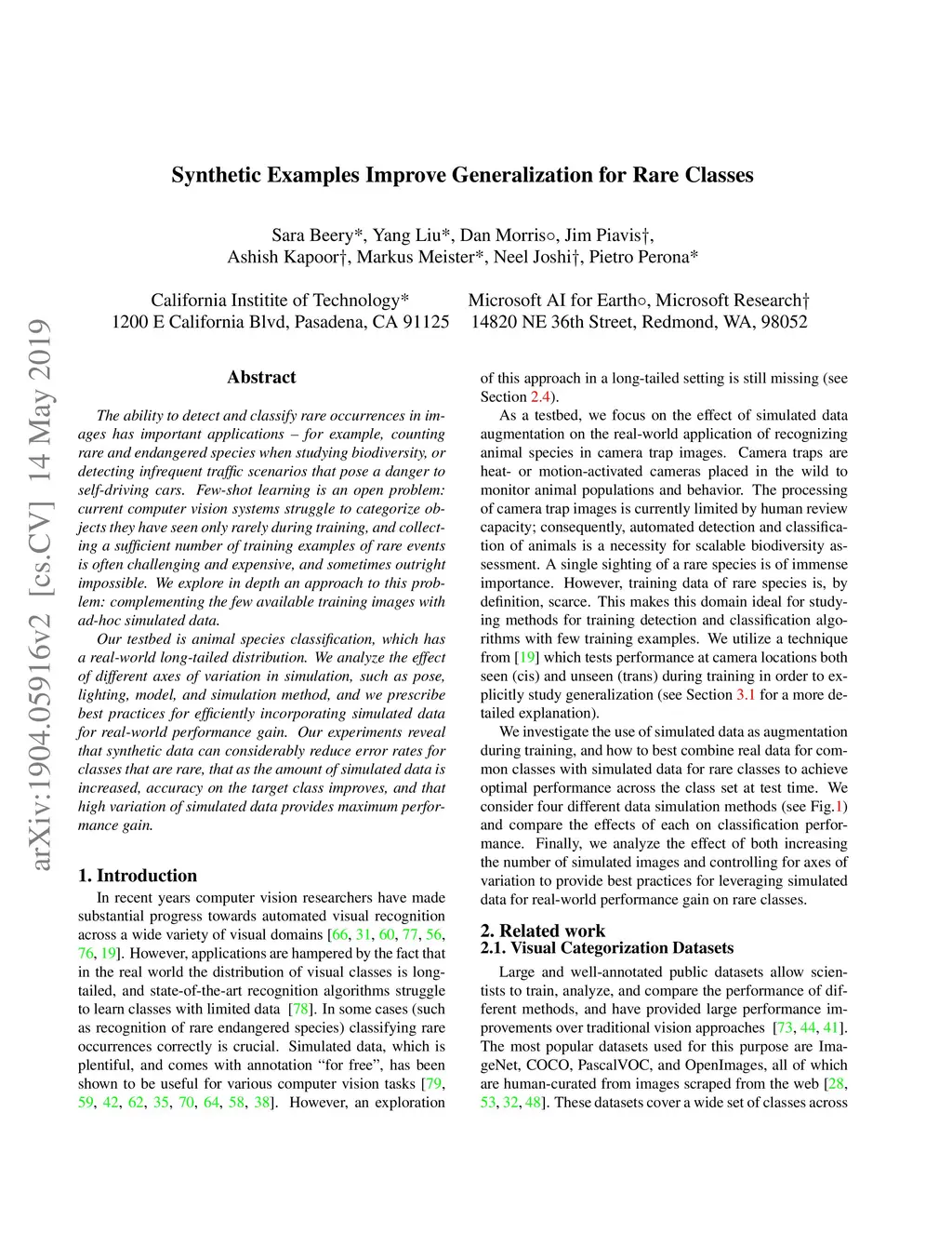 Synthetic Examples Improve Generalization for Rare Classes