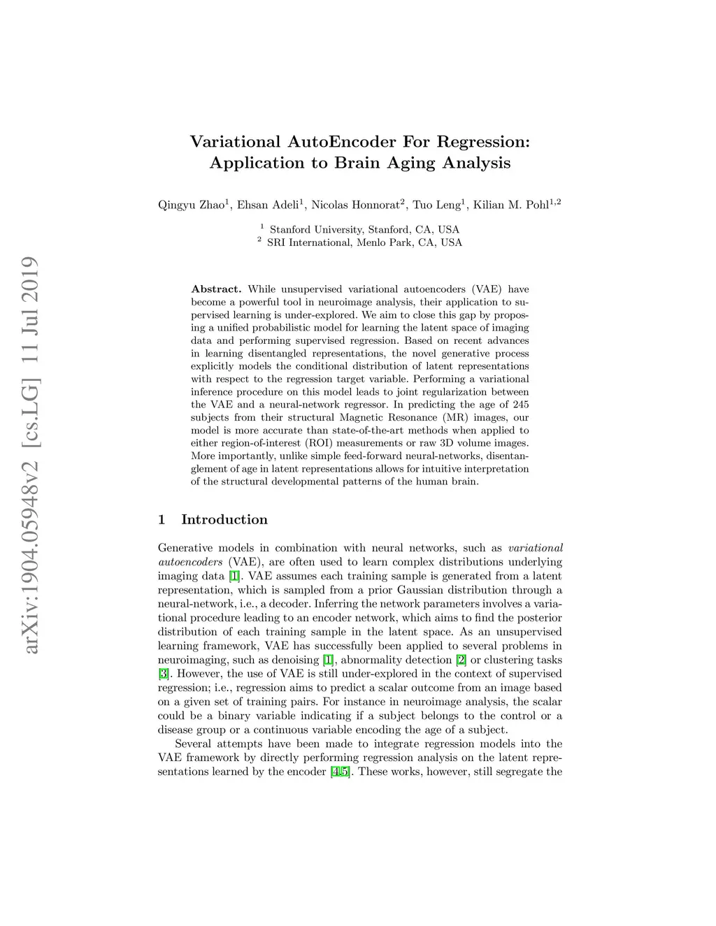 Variational AutoEncoder For Regression: Application to Brain Aging