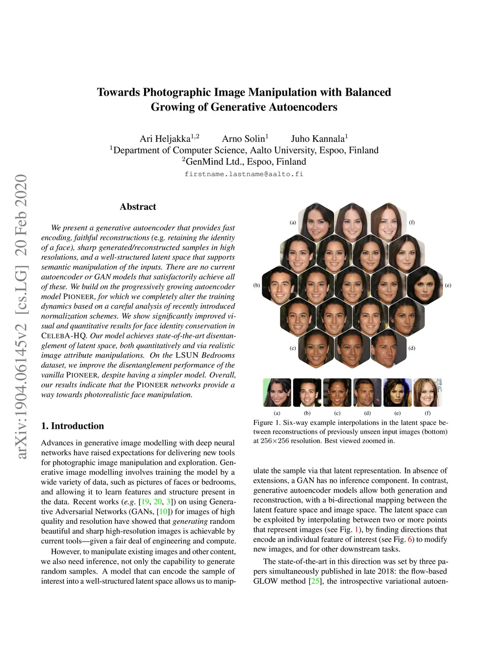 We present a generative autoencoder that provides fast encoding, faithful reconstructions (eg. retaining the identity of a face), sharp generated/reconstructed samples in high resolutions, and a well-structured latent space that supports semantic manipulation of the inputs. There are no current autoencoder or GAN models that satisfactorily achieve all of these. We build on the progressively growing autoencoder model PIONEER, for which we completely alter the training dynamics based on a careful analysis of recently introduced normalization schemes. We show significantly improved visual and quantitative results for face identity conservation in CelebAHQ. Our model achieves state-of-the-art disentanglement of latent space, both quantitatively and via realistic image attribute manipulations. On the LSUN Bedrooms dataset, we improve the disentanglement performance of the vanilla PIONEER, despite having a simpler model. Overall, our results indicate that the PIONEER networks provide a way towards photorealistic face manipulation.
