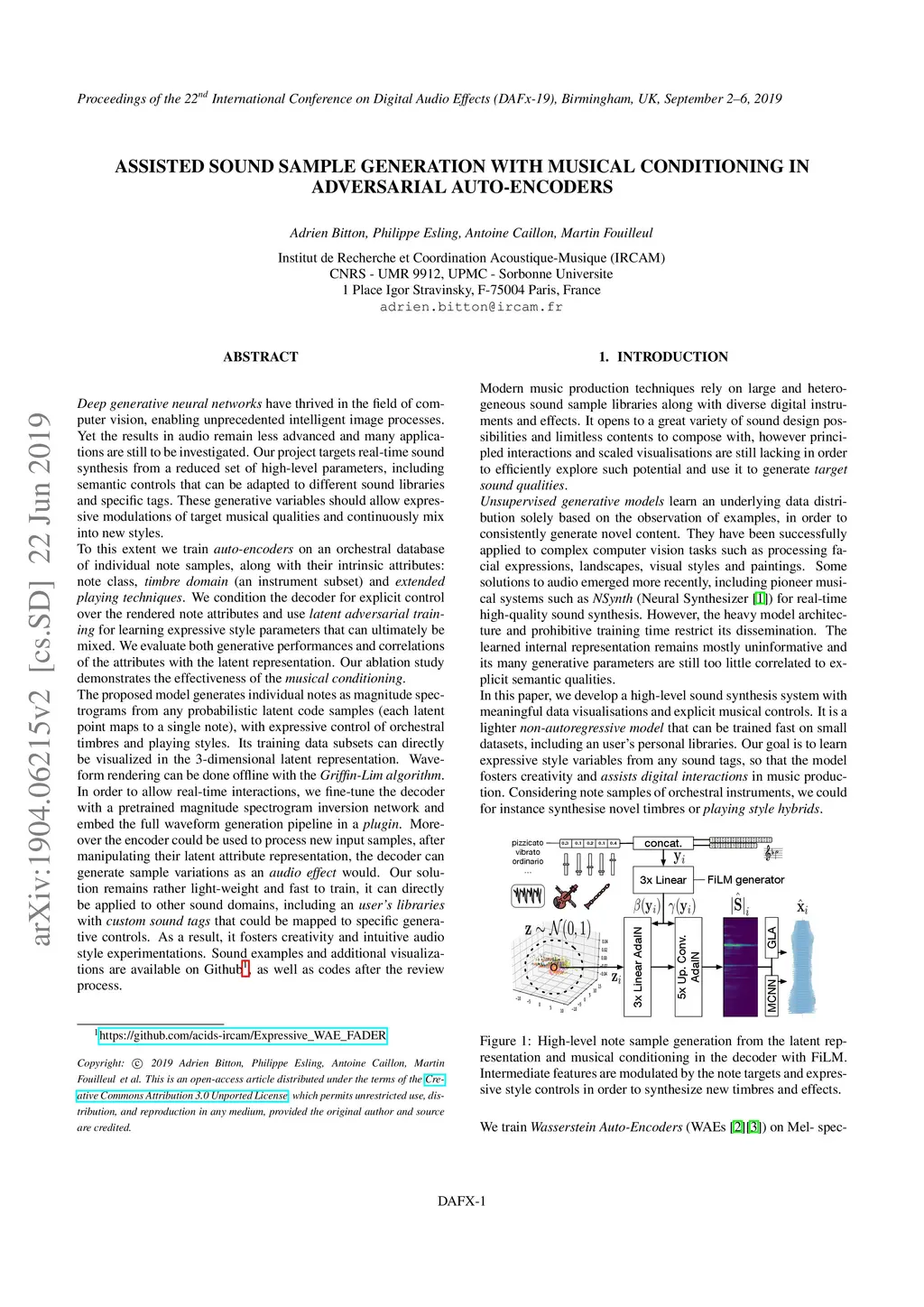Generative models have thrived in computer vision, enabling unprecedented image processes. Yet the results in audio remain less advanced. Our project targets real-time sound synthesis from a reduced set of high-level parameters, including semantic controls that can be adapted to different sound libraries and specific tags. These generative variables should allow expressive modulations of target musical qualities and continuously mix into new styles. To this extent we train AEs on an orchestral database of individual note samples, along with their intrinsic attributes: note class, timbre domain and extended playing techniques. We condition the decoder for control over the rendered note attributes and use latent adversarial training for learning expressive style parameters that can ultimately be mixed. We evaluate both generative performances and latent representation. Our ablation study demonstrates the effectiveness of the musical conditioning mechanisms. The proposed model generates notes as magnitude spectrograms from any probabilistic latent code samples, with expressive control of orchestral timbres and playing styles. Its training data subsets can directly be visualized in the 3D latent representation. Waveform rendering can be done offline with GLA. In order to allow real-time interactions, we fine-tune the decoder with a pretrained MCNN and embed the full waveform generation pipeline in a plugin. Moreover the encoder could be used to process new input samples, after manipulating their latent attribute representation, the decoder can generate sample variations as an audio effect would. Our solution remains rather fast to train, it can directly be applied to other sound domains, including an user's libraries with custom sound tags that could be mapped to specific generative controls. As a result, it fosters creativity and intuitive audio style experimentations.