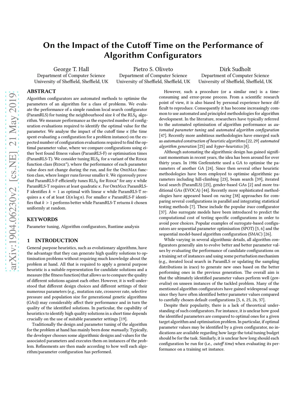 On the Impact of the Cutoff Time on the Performance of Algorithm