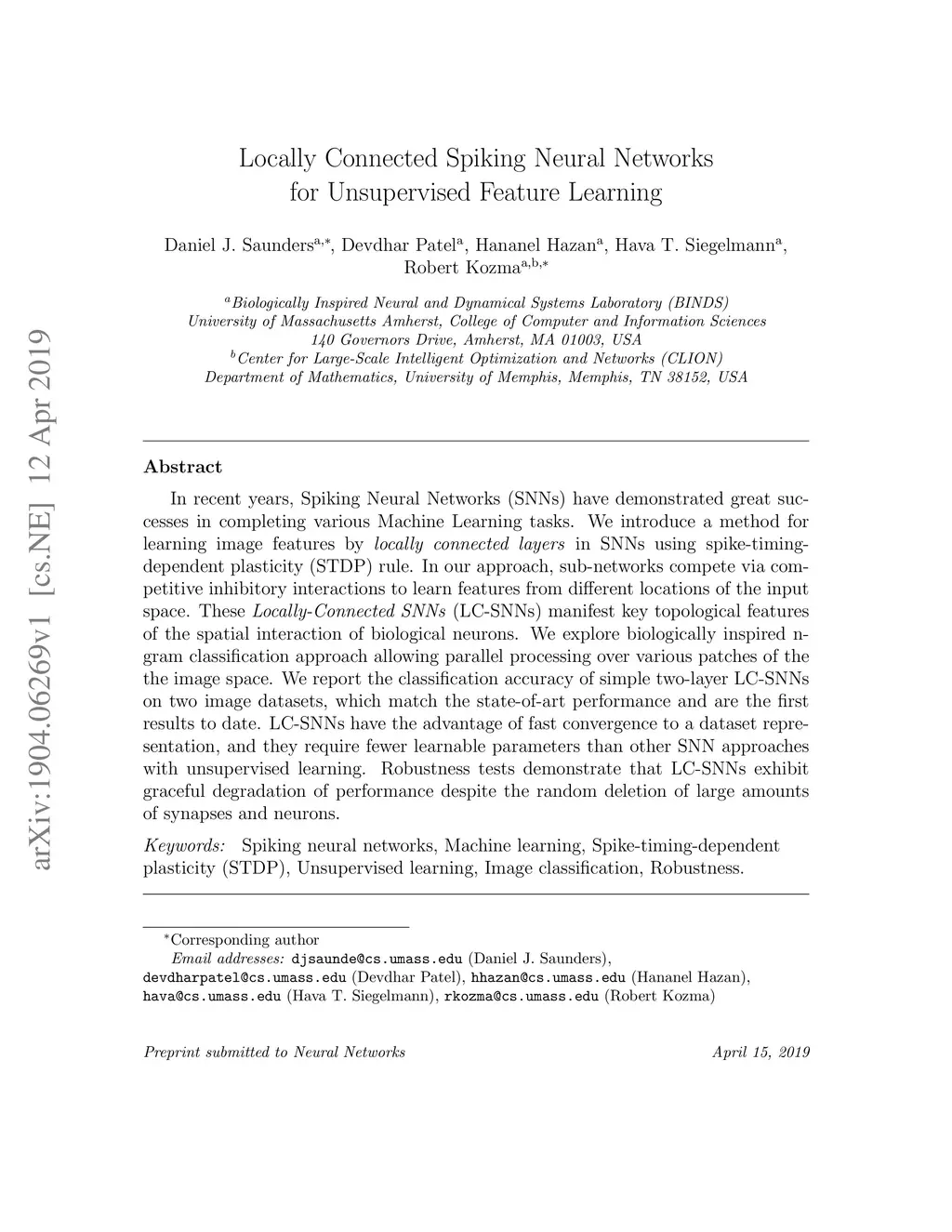 Locally Connected Spiking Neural Networks for Unsupervised Feature