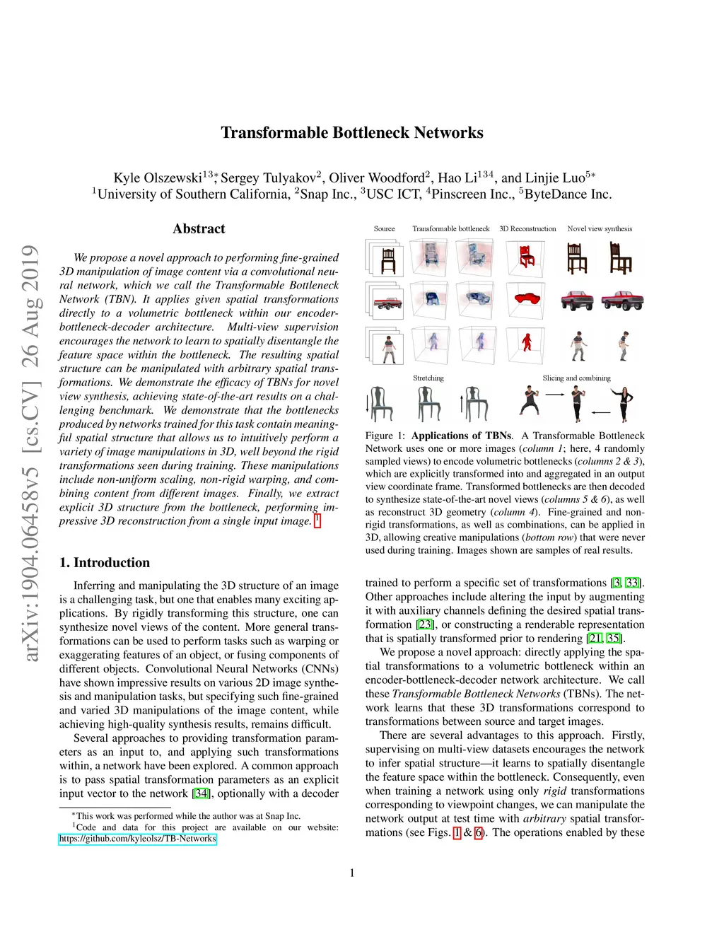 Transformable Bottleneck Networks
