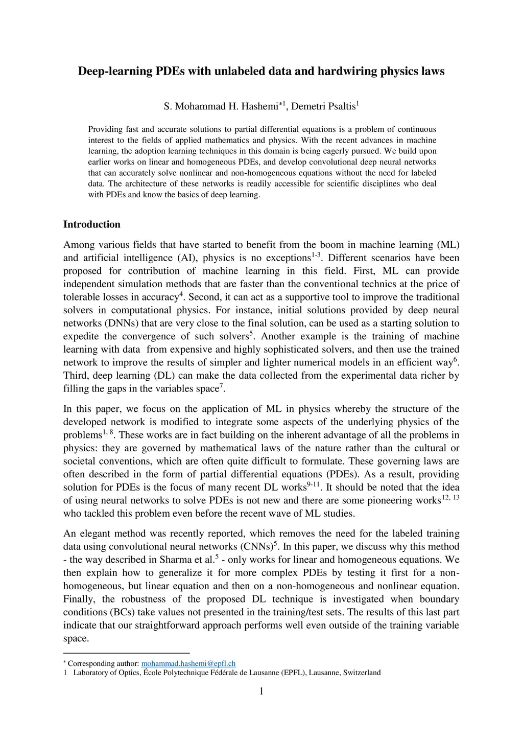 Deep-learning PDEs with unlabeled data and hardwiring physics laws
