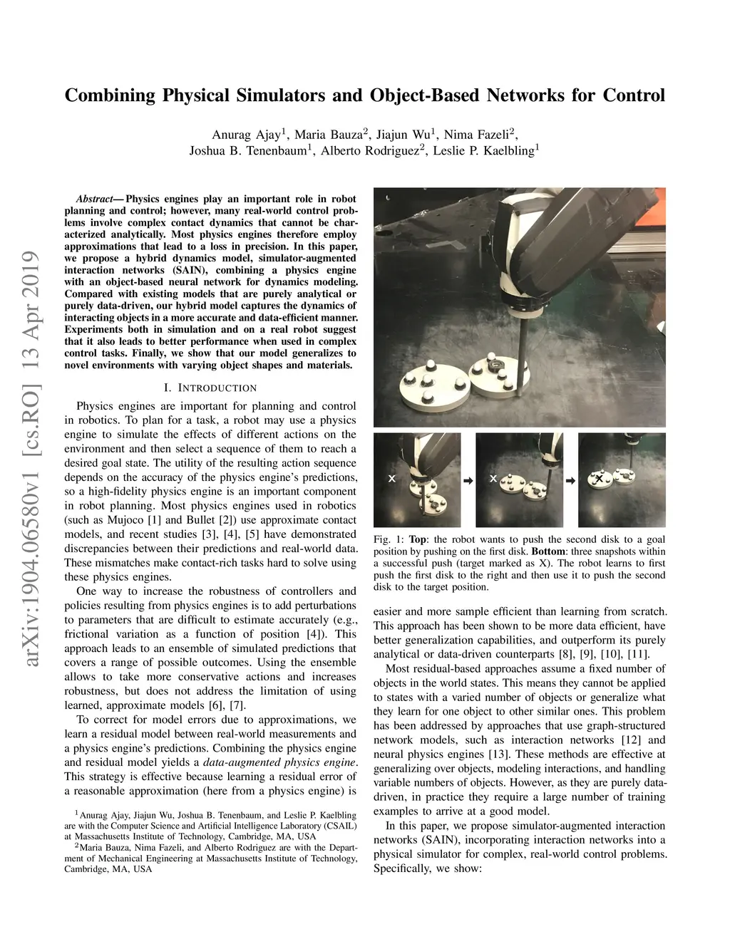 Physics engines play an important role in robot planning and control; however, many real-world control problems involve complex contact dynamics that cannot be characterized analytically. Most physics engines therefore employ . approximations that lead to a loss in precision. In this paper, we propose a hybrid dynamics model, simulator-augmented interaction networks (SAIN), combining a physics engine with an object-based neural network for dynamics modeling. Compared with existing models that are purely analytical or purely data-driven, our hybrid model captures the dynamics of interacting objects in a more accurate and data-efficient manner.Experiments both in simulation and on a real robot suggest that it also leads to better performance when used in complex control tasks. Finally, we show that our model generalizes to novel environments with varying object shapes and materials.