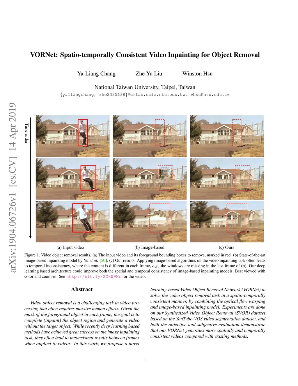 VORNet: Spatio-temporally Consistent Video Inpainting for Object Removal