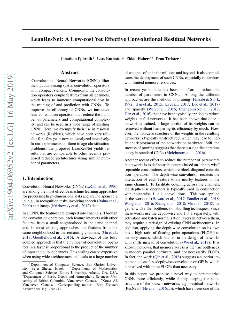 LeanResNet: A Low-cost Yet Effective Convolutional Residual Networks