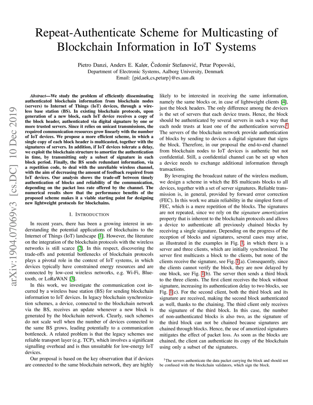 Repeat-Authenticate Scheme for Multicasting of Blockchain Information in