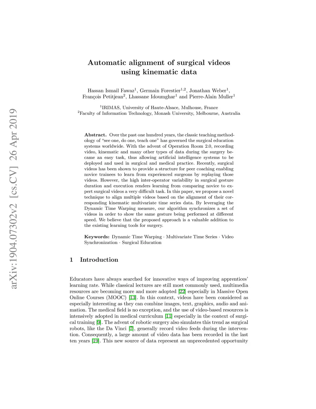 Automatic alignment of surgical videos using kinematic data
