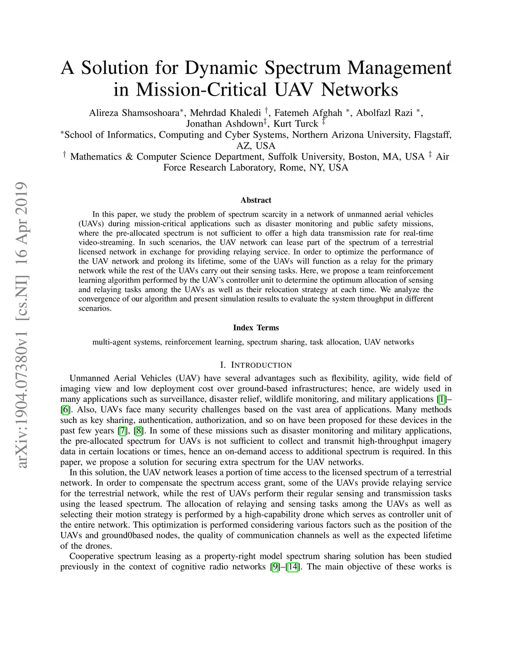 A Solution for Dynamic Spectrum Management in Mission-Critical UAV