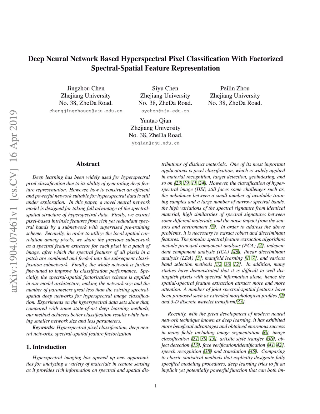 Deep learning has been widely used for hyperspectral pixel classification due to its ability of generating deep feature representation. However, how to construct an efficient and powerful network suitable for hyperspectral data is still under exploration. In this paper, a novel neural network model is designed for taking full advantage of the spectral-spatial structure of hyperspectral data. Firstly, we extract pixel-based intrinsic features from rich yet redundant spectral bands by a subnetwork with supervised pre-training scheme. Secondly, in order to utilize the local spatial correlation among pixels, we share the previous subnetwork as a spectral feature extractor for each pixel in a patch of image, after which the spectral features of all pixels in a patch are combined and feeded into the subsequent classification subnetwork. Finally, the whole network is further fine-tuned to improve its classification performance. Specially, the spectral-spatial factorization scheme is applied in our model architecture, making the network size and the number of parameters great less than the existing spectral-spatial deep networks for hyperspectral image classification. Experiments on the hyperspectral data sets show that, compared with some state-of-art deep learning methods, our method achieves better classification results while having smaller network size and less parameters.