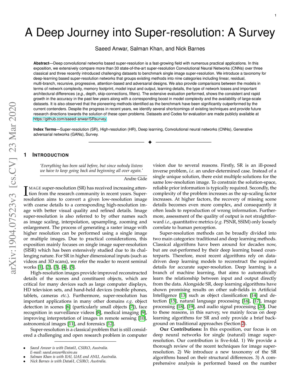 A Deep Journey into Super-resolution: A survey
