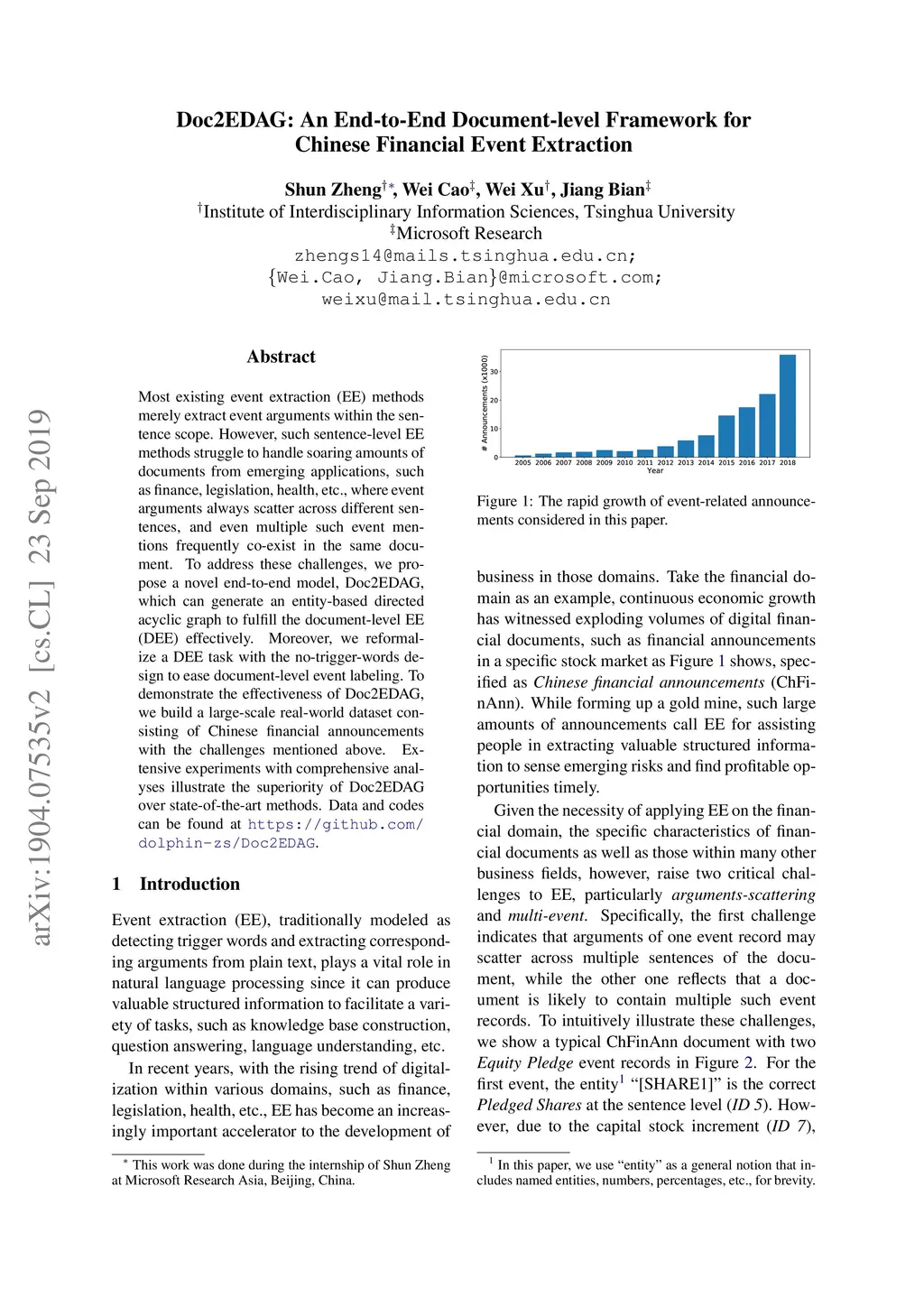 Doc2EDAG: An End-to-End Document-level Framework for Chinese Financial