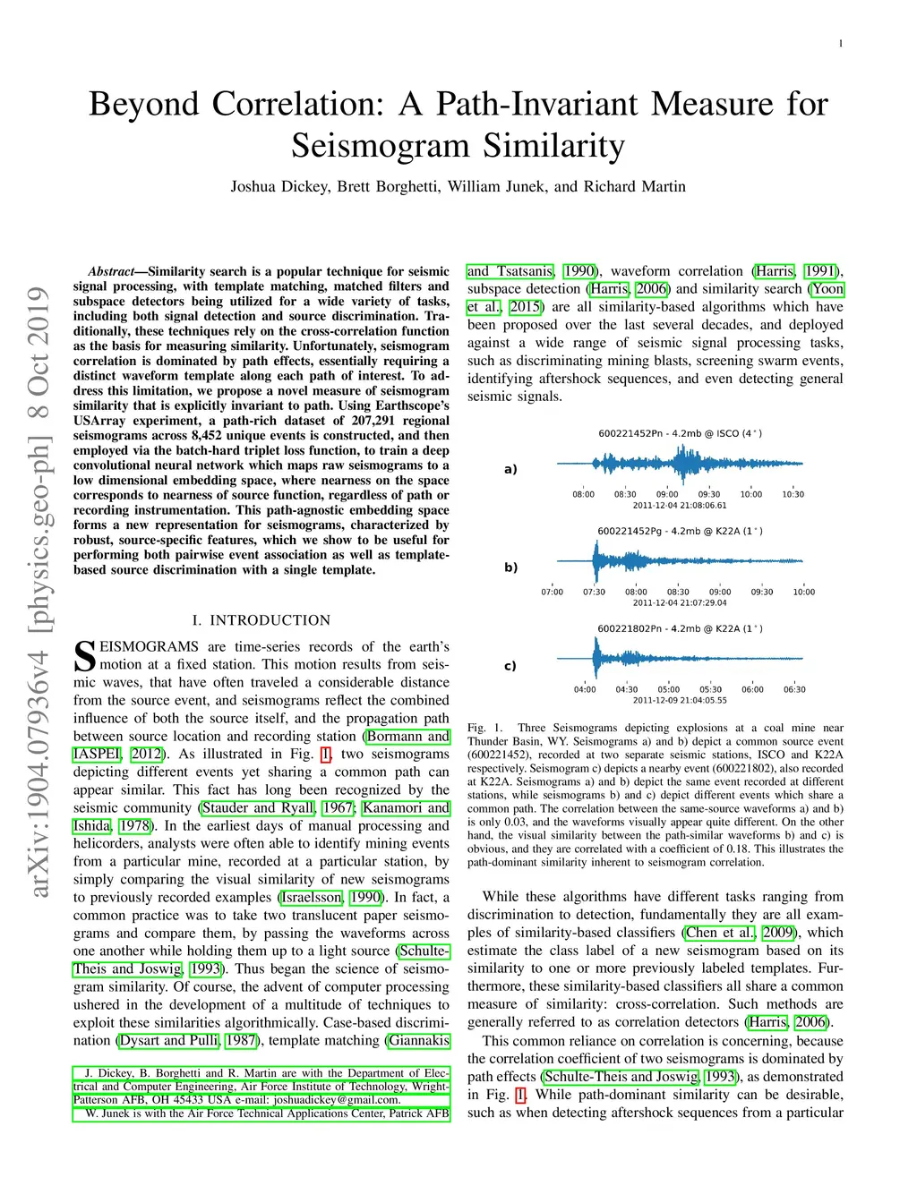 Similarity search is a popular technique for seismic signal processing, with template matching, matched filters and subspace detectors being utilized for a wide variety of tasks, including both signal detection and source discrimination. Traditionally, these techniques rely on the cross-correlation function as the basis for measuring similarity. Unfortunately, seismogram correlation is dominated by path effects, essentially requiring a distinct waveform template along each path of interest. To address this limitation, we propose a novel measure of seismogram similarity that is explicitly invariant to path. Using Earthscope's USArray experiment, a path-rich dataset of 207,291 regional seismograms across 8,452 unique events is constructed, and then employed via the batch-hard triplet loss function, to train a deep convolutional neural network which maps raw seismograms to a low dimensional embedding space, where nearness on the space corresponds to nearness of source function, regardless of path or recording instrumentation. This path-agnostic embedding space forms a new representation for seismograms, characterized by robust, source-specific features, which we show to be useful for performing both pairwise event association as well as template-based source discrimination with a single template.