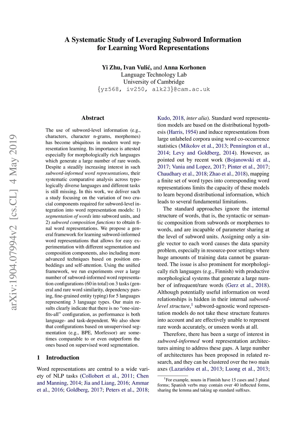 A Systematic Study of Leveraging Subword Information for Learning Word Representations